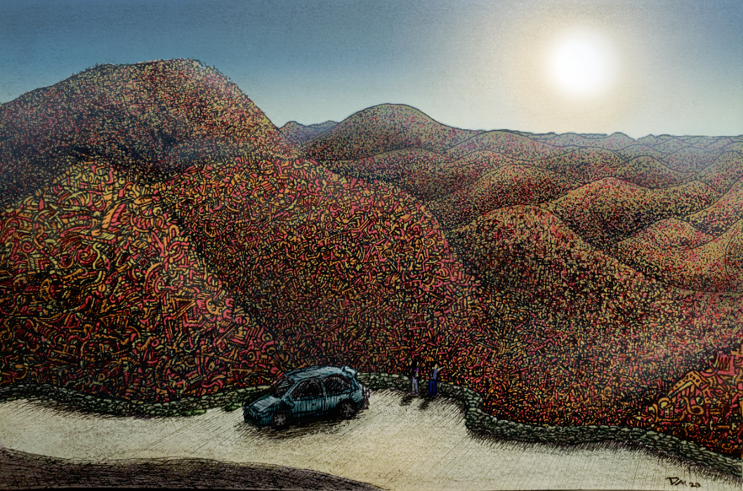 (01/06/2023) This piece represents nature and it’s immense vastness and complexity. No matter what scale, there is always an insurmountable level of detail in everything around us, so much that we must choose to ignore it or we would constantly be overwhelmed. And yet we try to make sense of everything, to see patterns from the chaos, details in the scribbles, in order to find, meaning. Why? It is in our nature.